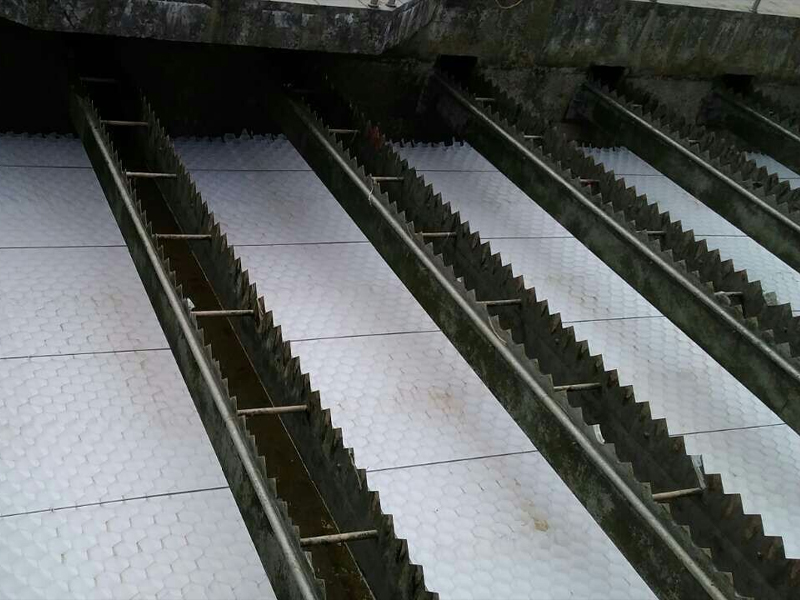 因為淤泥附著,藻類生在水堰和浮渣等物體卡在出水堰口,水堰出水污染,有些堰口堵水不均勻。處理方法:定期清理出水堰的污垢,適當(dāng)加入氯清阻止藻類、淤泥在堰口生長、積聚。