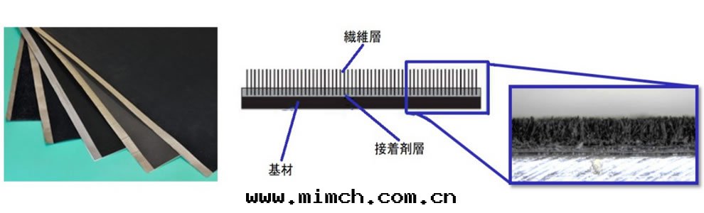 | 材料特(tè)色(sè) | ・光的(de)反(fǎn)射防止性(xìng)能(néng)非(fēi)常高(gāo)、所(suǒ)有(yǒu)波长(cháng)的(de)光都能(néng)有(yǒu)效吸收(shōu)。 ・耐藥品性(xìng)・耐候性(xìng)良好(hǎo),防滴(dī)用途方(fāng)面(miàn)也(yě)可(kě)以(yǐ)采用。 ・滑動(dòng)性(xìng)、緩沖性(xìng)方(fāng)面(miàn)也(yě)能(néng)發(fà)挥出(chū)色(sè)的(de)効果。 ・因(yīn)为(wèi)能(néng)控制光的(de)反(fǎn)射、表(biǎo)面(miàn)为(wèi)深黑(hēi)色(sè)、在(zài)意(yì)匠性(xìng)(装飾性(xìng))方(fāng)面(miàn)也(yě)很優越。 ・利用植毛(máo)的(de)立体构造,也(yě)可(kě)以(yǐ)用于(yú)降低(dī)热(rè)源付近(jìn)的(de)接觸温(wēn)度(dù)。 ・反(fǎn)面(miàn)與(yǔ)胶(jiāo)水(shuǐ)或(huò)两(liǎng)面(miàn)胶(jiāo)带(dài)貼合可(kě)以(yǐ)進(jìn)行沖切(qiè)加工。 |