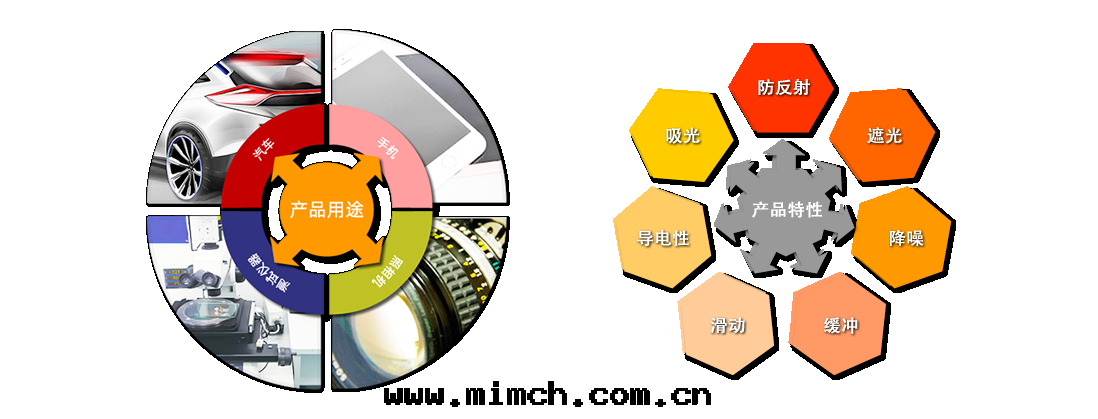 | 主(zhǔ)要(yào)用途 | ・數碼相機(jī), 光學(xué)儀器內(nèi)部(bù)防反(fǎn)射/吸光 /消雜光 ・鏡(jìng)头(tóu)內(nèi)部(bù)防反(fǎn)射/吸光 ・汽車HUD(Head Up Display)防反(fǎn)射/吸光、 大(dà)廳玻璃防止倒影 |