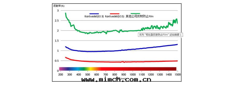 反(fǎn)射率效果(99.5%以(yǐ)上(shàng)的(de)防反(fǎn)射率)![]() ※ 上(shàng)述數値是(shì)敝司測定(dìng)的(de)一(yī)个(gè)範例、不(bù)是(shì)保証値。使用时(shí),用途・使用条(tiáo)件(jiàn)要(yào)充分(fēn)研究・确認之(zhī)後(hòu)再使用。 |