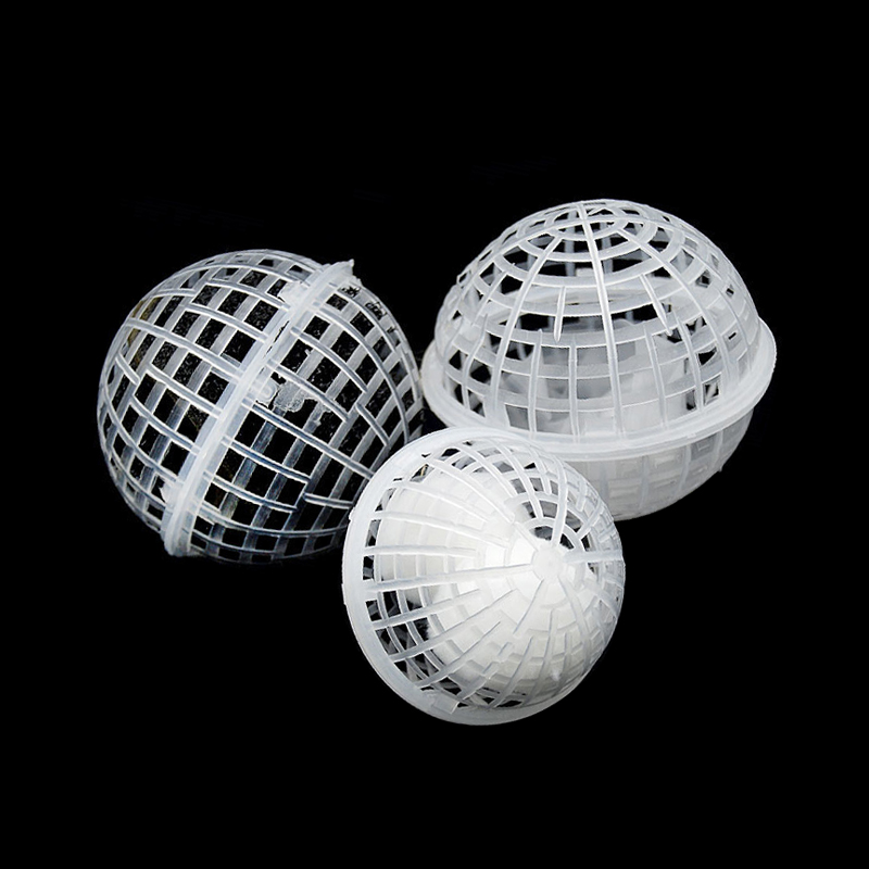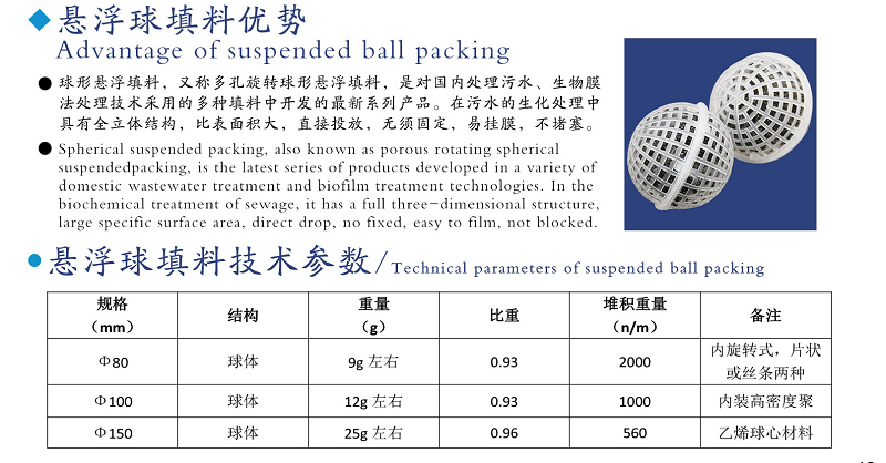 懸浮填料,又稱多孔旋轉(zhuǎn)球形懸浮填料,是對國內(nèi)處理污水、生物膜法處理技術(shù)采用的多種填料中開發(fā)的新材料。在污水的生化處理中具有全立體結(jié)構(gòu),比表面積大,直接投放,無須固定,易掛膜,不堵塞。